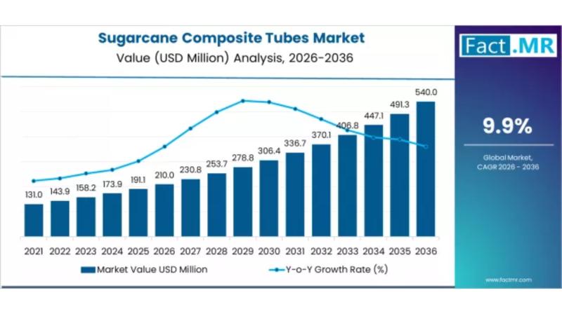 The global sugarcane composite tubes market is poised for remarkable growth, driven by rising demand for eco-friendly, renewable, and high-performance packaging solutions. According to a recent analysis, the market is projected to expand from USD 210.0 million in 2026 to USD 540.0 million by 2036, representing a total growth of 157.1% and a robust CAGR of 9.9% during the forecast period.