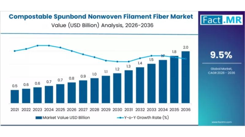 The global compostable spunbond nonwoven filament fiber market is poised for remarkable growth, driven by increasing demand for sustainable, biodegradable, and high-performance materials across multiple industries. According to recent market insights, the market is projected to expand from USD 0.80 billion in 2026 to USD 1.98 billion by 2036, registering a robust CAGR of 9.5% during the forecast period.