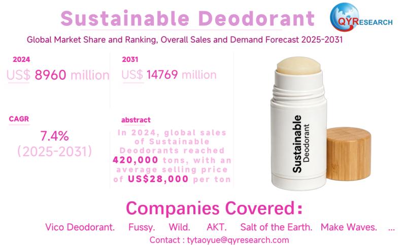 Global leading market research publisher QYResearch published the release of its latest report, "Sustainable Deodorant - Global Market Share, Ranking, Sales, and Demand Forecast 2025-2031". This in-depth report provides a complete analysis of the global Sustainable Deodorant market, offering critical insights into market size, share, demand, industry development status, and future forecasts. Whether you're a stakeholder, investor, or…