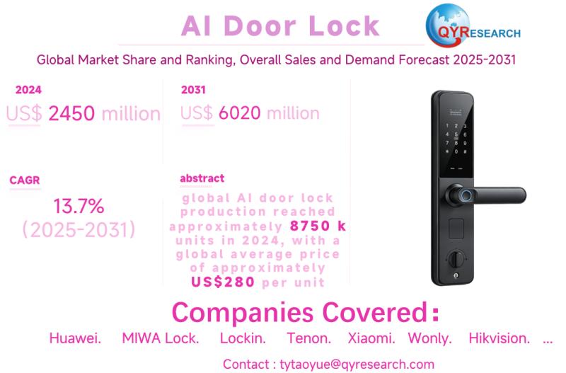 Unlock the Future of the AI Door Lock Market: Comprehensive Global Market Report 2025-2031 Global leading market research publisher QYResearch published the release of its latest report, "AI Door Lock - Global Market Share, Ranking, Sales, and Demand Forecast 2025-2031". This in-depth report provides a complete analysis of the global AI Door Lock market, offering critical insights into market size, share, demand, industry development status, and future forecasts. Whether you're a