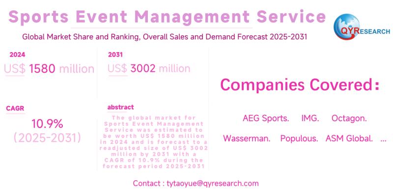 Unlock the Future of the Sports Event Management Service Market: Comprehensive Global Market Report 2025-2031 Global leading market research publisher QYResearch published the release of its latest report, "Sports Event Management Service - Global Market Share, Ranking, Sales, and Demand Forecast 2025-2031". This in-depth report provides a complete analysis of the global Sports Event Management Service market, offering critical insights into market size, share, demand, industry development status, and future forecasts.