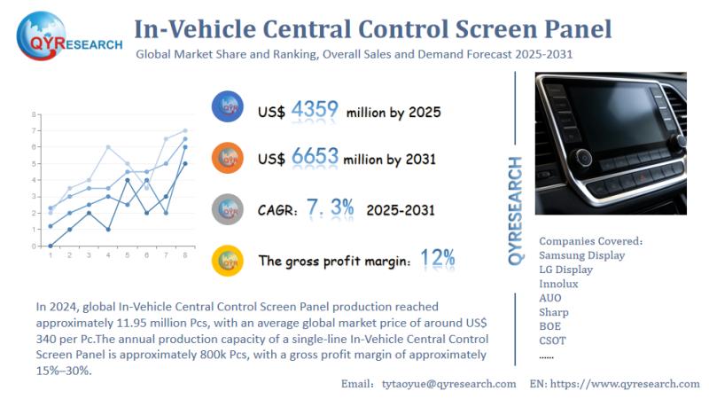 Global leading market research publisher QYResearch published the release of its latest report, "In-Vehicle Central Control Screen Panel - Global Market Share, Ranking, Sales, and Demand Forecast 2025-2031". This in-depth report provides a complete analysis of the global In-Vehicle Central Control Screen Panel market, offering critical insights into market size, share, demand, industry development status, and future forecasts. Whether you're a stakeholder, investor, or industry player, this report equips you with the data and strategies needed to stay ahead in a rapidly evolving market.