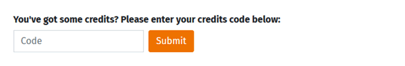 After typing in your credit code press the submit button to use the code.